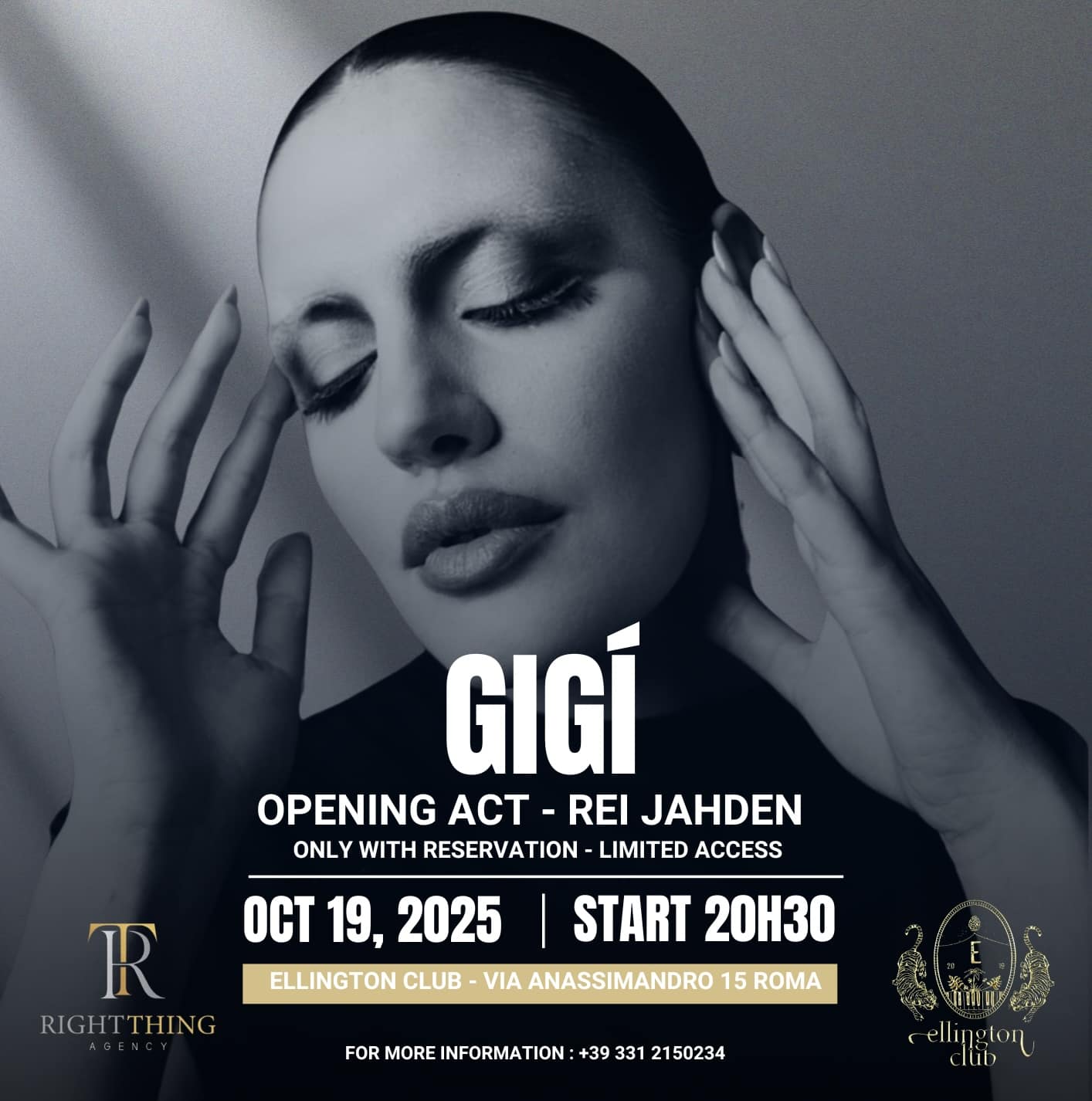 Gigì, all’anagrafe Giorgia Papasidero, è una cantante, autrice e performer italiana. Dopo gli studi alla Rider University (New Jersey) e la partecipazione a The Voice of Italy (2016), si è esibita in città come Dubai, Cannes, New York e Los Angeles, portando l’italianità in una dimensione globale. Con il singolo “Cleopatra” ha inaugurato una nuova fase artistica in italiano, dedicata all’universo femminile e alla rappresentazione della donna non come vittima, ma come guerriera; come forza creativa, politica e ispiratrice. Il suo stile fonde radici mediterranee e influenze internazionali, facendo della sua musica un intreccio di culture e contaminazioni. Standing Ovation è il suo progetto più ambizioso: un format curatoriale e itinerante che unisce musica, impegno sociale e ascolto attivo.